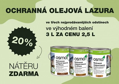 OSMO jsou nátěry na dřevo, které prověřil čas, zkušenost a moudrost. Jsou vyrobeny na bázi přírodních olejů a vosků. Chrání dřevo zevnitř i z vnějšku, nevytváří film, ale vytvoří ochranný povrch s otevřenými póry, díky kterému může dřevo dýchat. Osmo nátěry lze jednoduše i lokálně renovovat. Neodprýskávají, nepraskají a neodlupují se. Vytváří dokonalý povrch dřevu s dobrou odolností. OSMO COLOR řeší povrchovou úpravu pro dřevo uvnitř (podlahy, nábytek, stěny i stropy) i úpravu dřeva ve vnějších prostorách (fasády, zahradní domky, ploty, terasy a zahradní nábytek). V nabídce Osmo proto naleznete oblíbené výrobky jako Osmo Terasový olej (= olej na terasu), Osmo Ochranná olejová lazura a Selská barva (= barvy do exteriéru; fasádní barvy), Osmo Top olej (= olej na kuchyňské desky), Dekorační vosk a Olejové mořidlo (= olej na nábytek), širokou nabídku Tvrdých voskových olejů na dřevo (= oleje na podlahu) a mnohem více!