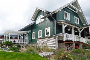 Tato dřevostavba je další stavbou profesionální stavební firmy specializující se na dřevostavby firmy GRADIENT. Zde je použita jako konečná úprava smrkového dřeva OSMO Selská barva č. 2101 Bílá, avšak objednaná na zakázku s biocidní látkou, aby mohl nátěr chránit dřevěnou fasádu ještě více, protože se nachází v blízkosti hustých lesů. To je velmi důležité, protože zde bude na dřevo působit zvýšená relativní vlhkost vzduchu a nátěr musí být schopen odolávat i těmto vlivům. OSMO si však zachovává svou recepturu na bázi přírodních olejů a vosků, které nechají dřevo dýchat. Proto fungují OSMO nátěry i na místech se zvýšenou vlhkostí.